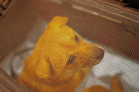 メッシュ越しのぽんちゃん。
