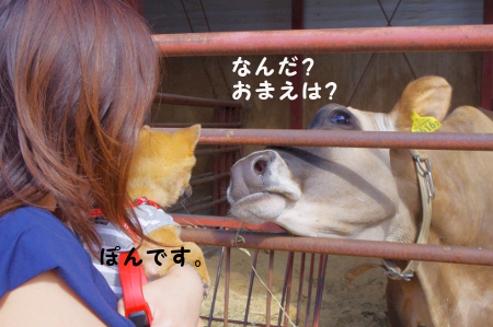 がいたりします。牛にメンチを切られるぽんちゃん。