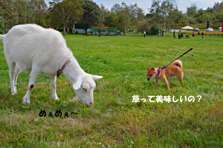 (やぎが顏を上げるたび、ダッシュで逃げるぽんちゃんでした)