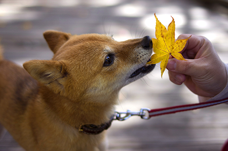 うん。ぽんは紅葉をたべようとしているのがお似合いかもね。