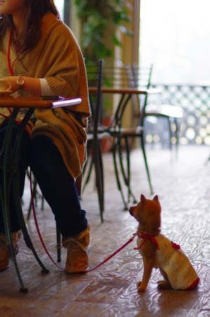 ぽんちゃん初ドッグカフェ。意外に行儀がよいではないですか。
