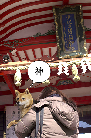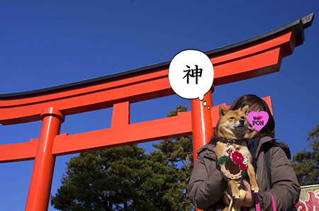 鳥居が青空に映えますが、またしてもぽんが偉そうです。