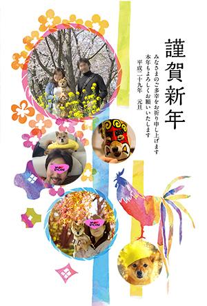 イッコー家の年賀状はここ数年同じレイアウトで写真と元号だけ差し替えてたらいまわしてきたという恐ろしく罰当たりな年の初めのご挨拶だったのだが、今年は郵便局のHPで配布している無料のテンプレートを使って作成してみた。それがこちら。