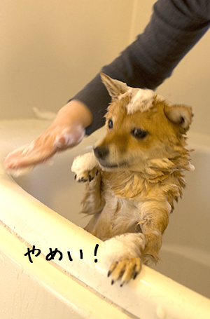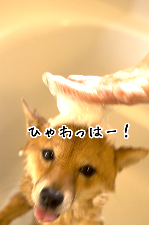 ぽん氏は頭のうしろを洗われるのが嫌いです。