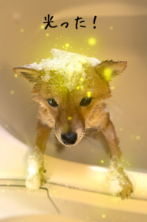 ぽん氏の犬成分とシャンプーの謎成分が反応して発光してきました!