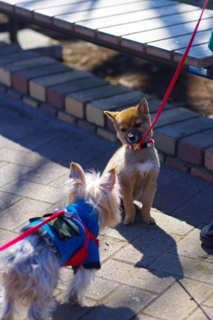 そして、ぽんちゃんはただでさえ小さいマメシバの子犬ですので、注目されまくりです。(多分)