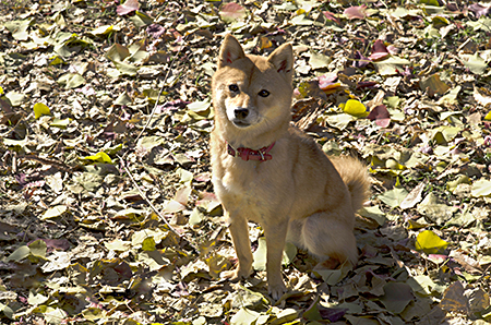 ぽんちゃん、枯葉の中だと忍者のように同体化してます。