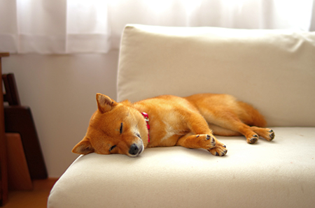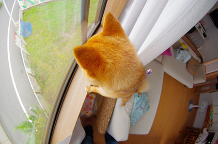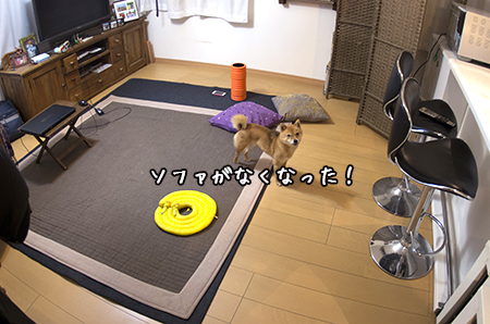 ソファがなくなってちょっと寂しいぽんちゃんに