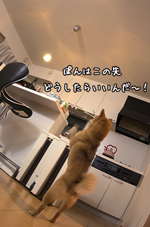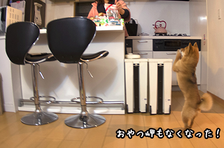おやつ岬がなくなったため立ち上がって少しでもおやつに近づこうとするぽん。