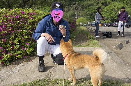 ぽんちゃんもピッチャーで出る気まんまん。ブルペンで肩を暖めて?います。
