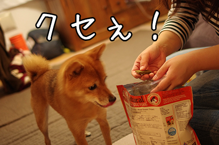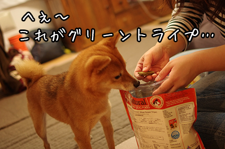 グリーントライプ自体はフリーズドライのように乾燥しているので、本当はぬるま湯でもどして食べさせるのですが…