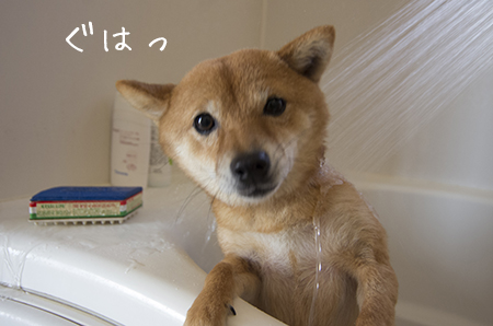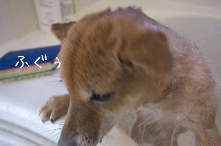 今年最後のシャンプーで変な顔になっているぽんちゃん。