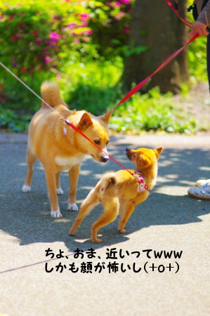 そして散歩中、コワモテのワンコにビビリまくるぽん氏。