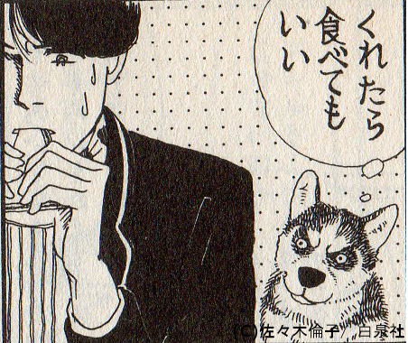 を食べているとき、それを欲しがらない。二階堂は意志が弱く、チョビにサンドイッチをあげてしまいましたが。
