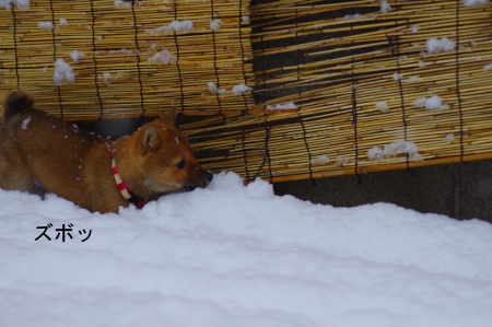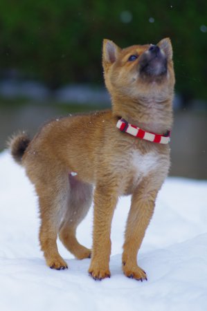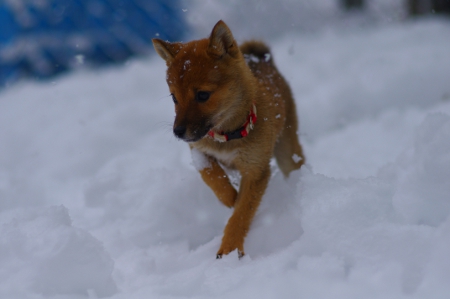 が降りまして、我が家のドッグランも10cmほど積もりました。そこに雪を知らない子犬を放してみたりして