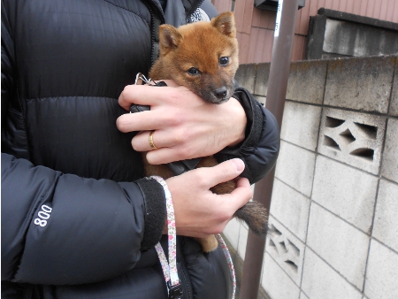 ですので、こんな風に抱っこし散歩で外の世界に慣れてもらっているのですが…